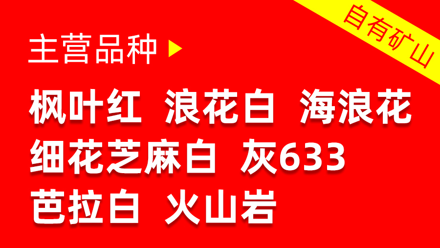 主营:拥有矿山开采权、枫叶红,浪花白,海浪花,芭拉白,火山岩,中国黑,细花芝麻灰633,粉红麻,…